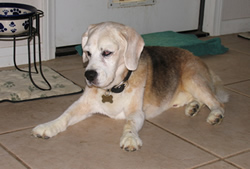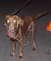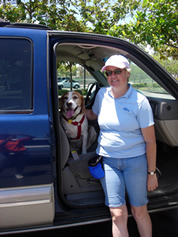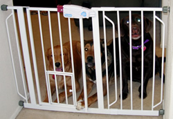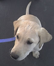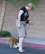 however she is looking down at her new found friend "Daddy", Cesar's Pitbull."